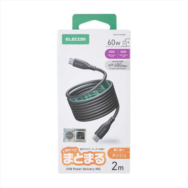 - ■磁石の力でくっつき、巻くだけでくるんとまとまるUSB Type-C(TM)ケーブルです。 ■磁石の力でくるんとまとまり、持ち運びに便利です。ケーブルを束ねたり、バンドで留めたりしなくても、簡単にまとめて収納できます。 ■設置環境や用途によってお好みのサイズになるよう、ケーブルの巻き半径は自由に調整することが可能です。 ■ケーブルがスチール面に吸着するため、デスクや棚などに取り付けて、デスク周りをすっきりさせることができ、お好みの配線も可能です。 ■※磁石の特性上、お好みの配線ができない場合があります。また机や棚などにくっつけた状態で製品を無理に引っ張ったり、ひねったりしないでください。 ■外皮には、耐久性に優れたナイロンメッシュを採用し、ケーブル表面の傷を防止します。 ■USB Power Deliveryによる最大60W(20V/3A)の充電に対応しているケーブルです。 ■※USB Power Deliveryをご利用になる場合は、接続する機器がUSB Power Deliveryに対応している必要があります。 ■※60W以上のUSB Power Delivery対応充電器および端末に接続した場合、充電は可能ですが出力は最大60Wに制限されます。