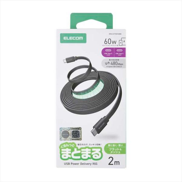 - 【商品解説】磁石の力でくっつき、巻くだけでくるんとまとまるUSB Type-C(TM)ケーブルです。磁石の力でくるんとまとまり、持ち運びに便利です。ケーブルを束ねたり、バンドで留めたりしなくても、簡単にまとめて収納できます。設置環境や用途によってお好みのサイズになるよう、ケーブルの巻き半径は自由に調整することが可能です。ケーブルがスチール面に吸着するため、デスクや棚などに取り付けて、デスク周りをすっきりさせることができ、お好みの配線も可能です。※磁石の特性上、お好みの配線ができない場合があります。また机や棚などにくっつけた状態で製品を無理に引っ張ったり、ひねったりしないでください。外皮には、耐久性に優れたナイロンメッシュを採用し、ケーブル表面の傷を防止します。薄型フラットケーブルのため、収納時に小さくまとめやすいです。USB Power Deliveryによる最大60W(20V/3A)の充電に対応しているケーブルです。※USB Power Deliveryをご利用になる場合は、接続する機器がUSB Power Deliveryに対応している必要があります。※60W以上のUSB Power Delivery対応充電器および端末に接続した場合、充電は可能ですが出力は最大60Wに制限されます。※ご使用になる機器の性能によって、供給される電力値が異なります。特許権者(発明者)より実施許諾を受けた正規ライセンス品で、特許認定ラベル付きです。(対象特許:日本特許第7511950号) ※特許認定ラベルは特許権者が発行する真正品識別用ラベルの呼称であり、公的機関による認定を意味するものではありません。最大480Mbps(USB2.0)の高速データ転送が可能です。コネクター部分に製品仕様が一目で分かる印字付きです。難燃性の素材を使用し、安全性を高めています。サビなどに強く信号劣化を抑える金メッキピンを採用しています。※本製品は磁石を使用しています。磁気カード(クレジットカード、キャッシュカードなど)やペースメーカーなど、磁気の影響を受けやすいものに近づけたり、近くで使用したりしないでください。磁力の影響により正常に動作しなくなるおそれがあります。※鉄粉など磁気特性を持つ細かいものが付着すると、取れなくなるおそれがあります。※USB Type-C and USB-C are trademarks of USB Implementers Forum. EUの「RoHS指令(電気・電子機器に対する特定有害物質の使用制限)」に適合(10物質)した、環境にやさしい製品です。自社環境認定基準を1つ以上満たし、『THINK ECOLOGY』マークを表示した製品です。環境への負荷軽減のため、輸送効率を高める設計の外装箱を使用した製品です。環境保全に取り組み、製品の包装容器が紙・ダンボール・ポリ袋のみで構成されている製品です。環境保全に取り組み、製品の包装容器におけるプラスチック重量を、社内基準製品より20%以上削減した製品です。【スペック】●型式:MPA-CCTMGF20BK(MPACCTMGF20BK)●JANコード:4549550415743仕様1:■コネクター形状:USB Type-C(TM)プラグ - USB Type-Cプラグ■対応機種:USB Type-Cポート搭載のスマートフォン、パソコン、AC充電器、モバイルバッテリーなど■規格:Hi-Speed USB(USB2.0)■対応転送速度:最大480Mbps ※理論値■USB Power Delivery対応:○■対応電圧/電流:最大20V/3A(60W)■DisplayPort Alternate Mode対応:×■プラグメッキ仕様:金メッキピン仕様2:■ツイストペアケーブル(通信線):○■ケーブル長:約2m ※コネクター含まず■ケーブル太さ:幅約6.7mm×厚み約2.7mm■カラー:ブラック■パッケージ形態:紙箱■保証期間:1年間■環境配慮事項:EU RoHS指令適合、THINK ECOLOGYマークこの商品は宅配便でお届けする商品です出荷可能日から最短日時でお届けします。※出荷完了次第メールをお送りします。配送サービス提供エリアを調べることができます「エリア検索」をクリックして、表示された画面にお届け先の郵便番号7桁を入力してください。ご購入可能エリア検索お買い上げ合計3,980円以上で送料無料となります。※3,980円未満の場合は、一律550円(税込)となります。●出荷可能日から最短日時でお届けします。(日時指定は出来ません。) ※お届け時に不在だった場合は、「ご不在連絡票」が投函されます。 「ご不在連絡票」に記載された宅配業者の連絡先へ、再配達のご依頼をお願いいたします。●お届けは玄関先までとなります。●宅配便でお届けする商品をご購入の場合、不用品リサイクル回収はお受けしておりません。●全て揃い次第の出荷となりますので、2種類以上、または2個以上でのご注文の場合、出荷が遅れる場合があります。詳細はこちら■商品のお届けについて商品の到着日については、出荷完了メール内のリンク(宅配業者お荷物お問い合わせサービス)にてご確認ください。詳しいお届け目安を確認する1度の注文で複数の配送先にお届けすることは出来ません。※注文時に「複数の送付先に送る」で2箇所以上への配送先を設定した場合、すべてキャンセルとさせていただきます。