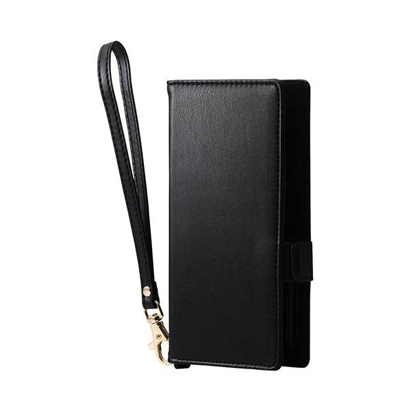エレコム(ELECOM) P-06PLFY4BK ブラック スマホケース 手帳型 多機種スマホ対応 汎用 自己吸着シート ハンドストラップ付き Sサイズ ソフトレザー