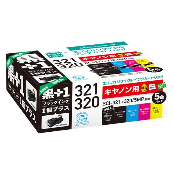 【お取り寄せ】エコリカ キャノン用リサイクルインクカートリッジBCI-321+320 5MP+黒