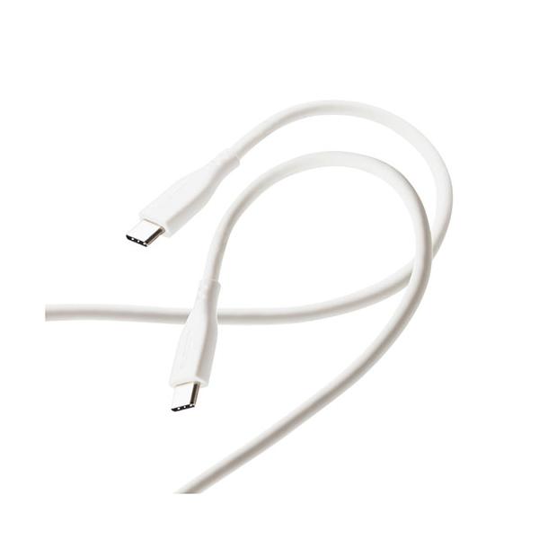- シリコン素材を採用した柔らかく、なめらかな手触りのUSBケーブルです。 折り癖のつきにくさと高い耐久性を兼ね備えているので、モバイル用として束ねて持ち運ぶのにおすすめです。 USB Power Delivery(最大60W)に対応し、スマートフォン・タブレットを超高速充電!USB Type-C端子を搭載した機器同士の接続ができます。■USB Type-C(TM)端子を搭載しているパソコン及び充電器・モバイルバッテリーなどに、USB Type-C(TM)端子を搭載しているスマートフォンやタブレットを接続し、充電やデータ転送ができるUSB2.0ケーブルです。※USB Type-C and USB-C are trademarks of USB Implementers Forum■シリコン素材を採用した柔らかく、なめらかな手触りのUSBケーブルです。■絡みにくく、取り回しがしやすいです。■断線しにくい高密度配線ケーブルを採用しています。■USB Power Deliveryに対応し、最大60W(20V/3A)の大電流を送電可能です。※ご使用になるパソコンやAC充電器などの性能によって、供給される電流値が異なります。■最大480Mbpsの高速データ転送が可能です。■難燃性の素材を使用し、安全性を高めています。■サビなどに強く信号劣化を抑える金メッキピンを採用しています。■EUの「RoHS指令(電気・電子機器に対する特定有害物質の使用制限)」に準拠(10物質)した、環境にやさしい製品です。■ゴミの少ない簡易パッケージです。■コネクタ形状1:USB Type-C(TM) オス■コネクタ形状2:USB Type-C(TM) オス■対応機種:USB Type-C(TM)端子を持つパソコン・充電器・モバイルバッテリーおよび、USB Type-C(TM)端子を持つスマートフォン・タブレットなど※USB Type-C and USB-C are trademarks of USB Implementers Forum■ケーブル長:1.0m ※コネクター含まず■ケーブル太さ:4.3mm■規格:USB2.0規格正規認証品■対応転送速度:最大480Mbps ※理論値■パワーデリバリー対応:○■プラグメッキ仕様:金メッキピン■シールド方法:2重シールド■カラー:ホワイト■パッケージ形態:袋+ステッカー■環境配慮事項:EU RoHS指令準拠(10物質)、簡易パッケージ
