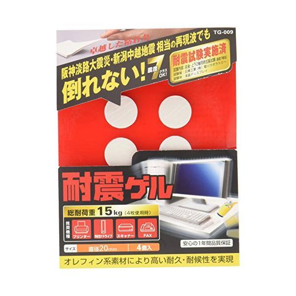 - 型番:TG-009JANコード:4953103065918■阪神淡路大震災、新潟中越地震の地震波再現振動試験にパスした抜群の吸着力 ■対候性に優れたオレフィン素材を使用 ■剥がせる為、レイアウト変更時にも安心 ■サイズ:直径20mm×H5mm ■重量:2g(1個) ■カラー:グレー ■保証期間:1年 ■入り数:4個 ■負荷荷重:耐荷重:15kg(4枚使用)