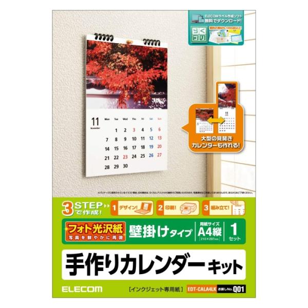 ELECOM エレコム エレコム 手作りカレンダーキット A4サイズ タテ 壁掛けタイプ 1セット EDT-CALA4LK