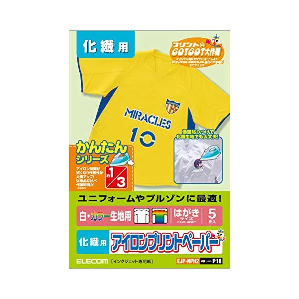エレコム アイロンプリントペーパー はがきサイズ 5枚入り 化繊用タイプ 白・カラー生地用 日本製 お探しNO:P18 EJP-NPH2