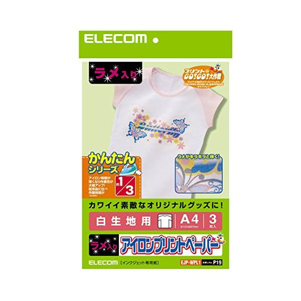 エレコム アイロンプリントペーパー A4 3枚 白/濃い生地用 ラメ入り EJP-WPL1