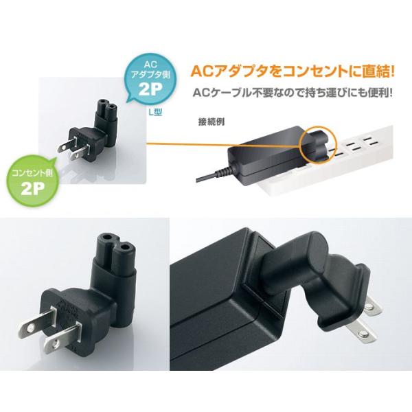 - ACケーブルを使わずに、ACアダプタをそのままコンセントに接続できる ACアダプタ用直結プラグ