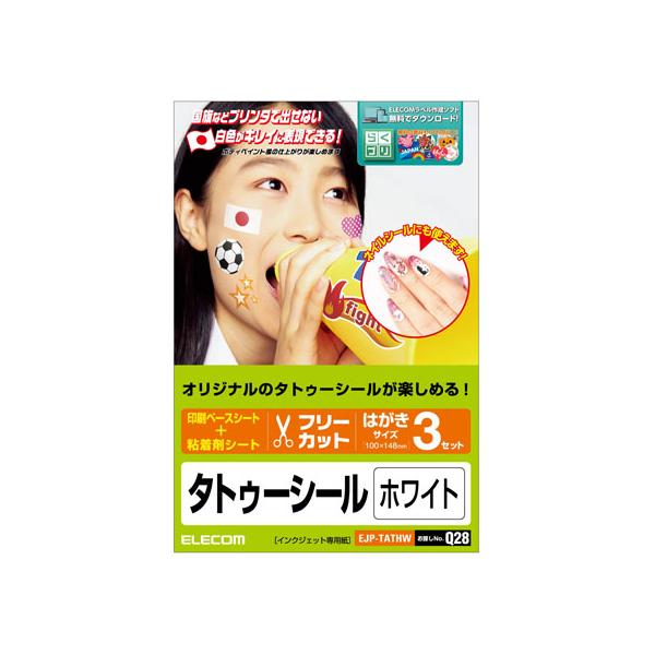 【お取り寄せ】エレコム 手作りタトゥーシール ホワイト ハガキサイズ 3シート EJP-TATHW