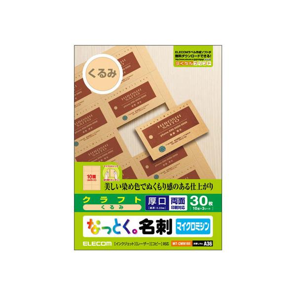 【お取り寄せ】エレコム 名刺用紙 マイクロミシン クラフト調 厚口 30枚 MT-CMN1BE