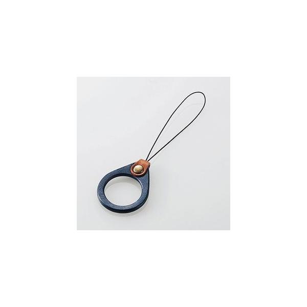 エレコム スマートフォン用ストラップ リングストラップ レザー ネイビー P-STF03BU 返品種別A