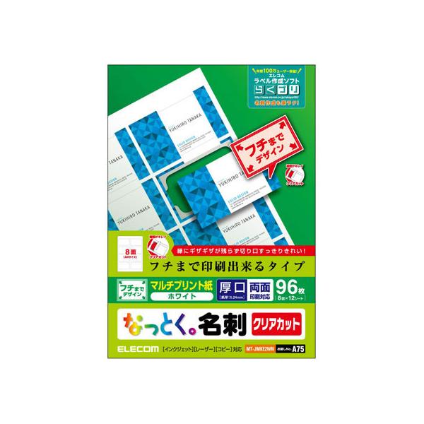 【お取り寄せ】エレコム 名刺用紙 クリアカット 縁まで 96枚 ホワイト MT-JMKE2WN