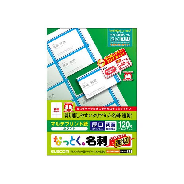 【お取り寄せ】エレコム 名刺用紙 速切クリアカット 120枚 ホワイト MT-JMKN2WNN