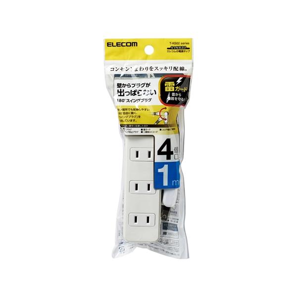 エレコム T-KS02-2410WH 電源タップ(雷ガード付き) 1m