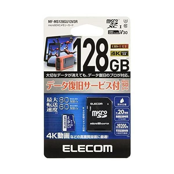 エレコム MicroSDXCカード データ復旧サービス付 ビデオスピードクラス対応 UHS-I U3 80MB s 128GB MF-MS128GU13V3R