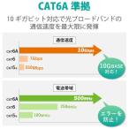 - 高速光通信に最適な次世代10ギガビットイーサネットに対応。取り回しがしやすいやわらかケーブルを採用し、高速で安定したネットワーク環境を実現するカテゴリー6A準拠LANケーブル。■高速光通信に最適な次世代10ギガビットイーサネットの「10GBASE-T」に対応したカテゴリー6A準拠LANケーブルです。 ■カテゴリー6の2倍である500MHzまでの高周波帯域まで対応しており、ノイズ干渉にも強く、高速で安定したネットワーク環境を実現します。 ■1000BASE-TX/1000BASE-T/100BASE-Tといった環境でも安定したデータ転送速度を確保します。 ■ケーブルが柔らかく取り回しがしやすい、スッキリと配線できる”やわらかLANケーブル”です。 ■ケーブル内に十字介在を入れることで、信号の干渉を防止しています。 ■スリムコネクタを採用していますので、隣接するポートでも干渉することがありません。 ■単線に比べてやわらかく、取り回しがしやすいヨリ線仕様です。 ■EUの「RoHS指令(電気・電子機器に対する特定有害物質の使用制限)」に準拠(10物質)した、環境にやさしい製品です。