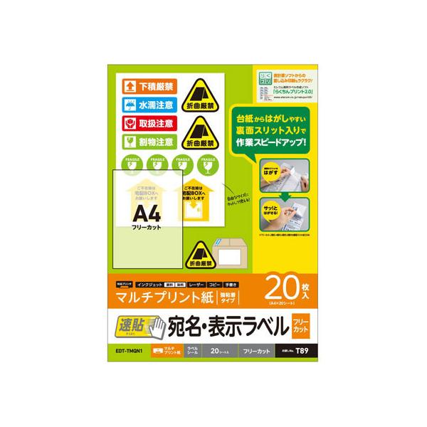 【お取り寄せ】エレコム 宛名表示ラベル 速貼 フリーカット 20シート EDT-TMQN1