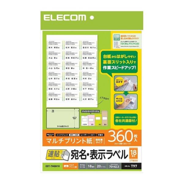 エレコム 宛名表示ラベル 速貼タイプ・18面付 EDT-TMQN18 代引不可 メール便(ネコポス)