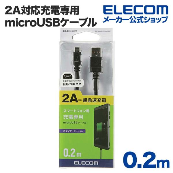 2A対応充電専用microUSBケーブル0.2m ブラック ケーブル長 0.2m┃MPA-AMBC2U02BK エレコム 在庫処分