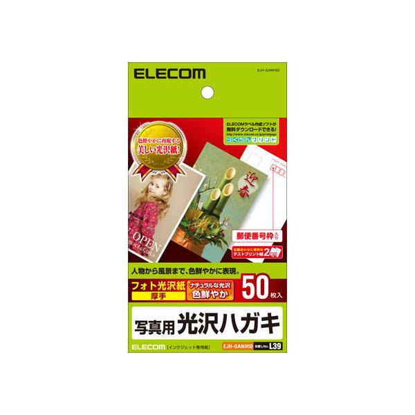 【お取り寄せ】エレコム ハガキ用紙 光沢 写真用 50枚 EJH-GANH50