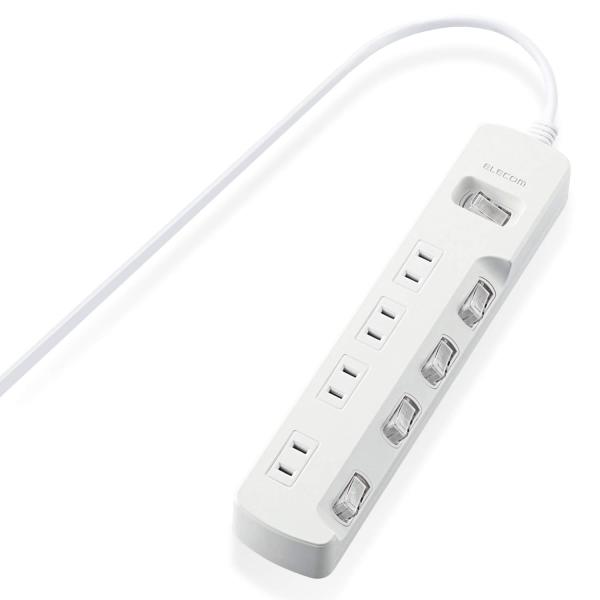 エレコム 電源タップ 一括&個別スイッチ 省エネ スイングプラグ 4個口 2m ホワイト T-E7A-2420WH