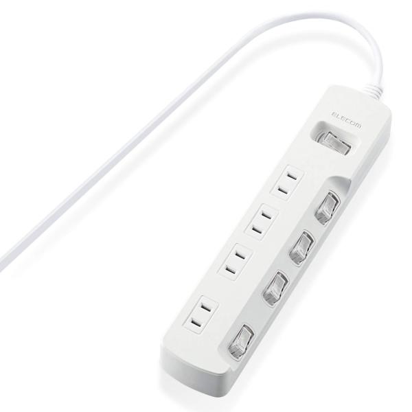 - 【返品種別A】□「返品種別」について詳しくはこちら□2015年05月 発売◆一括スイッチと個別スイッチが付いた省エネタップ待機電力をまとめて節約できる一括スイッチと、接続機器ごとにON/OFFでき、個別に節約できる個別スイッチが付いた省エネタップです。◆斜め配置のスイッチを採用ACアダプタや大きめのプラグを接続してもスイッチに干渉しにくい、斜め配置のスイッチを採用しています。◆隣と干渉しにくい差込口を装備ACアダプタを接続しても隣の差込口に干渉しにくいように、1個の差込口を離れて配置しています。◆トラッキング防止プラグプラグの刃の根本に絶縁キャップが付いており、トラッキング現象による火災の防止に役立ちます。◆二重被ふくコードを採用電源コードには、社団法人日本配線器具工業会規格(JWDS0010)に適合した二重被ふくコードを採用していますので、断線や被ふく破れによる感電・火災の防止に有効です。◆180°スイングプラグを採用狭い場所でも配線しやすい180°スイングプラグを採用しています。◆差込口にユリア樹脂を使用差込口には耐熱性に優れたユリア樹脂を使用していますので、万一の発熱の際にも融解しにくく、電気火災の防止に有効です。◆2ピン式4個口タイププラグ仕様は2ピン式で、便利な4個口タイプです。■ 仕 様 ■本体差込口形状:2ピン本体差込口個数:4個口プラグ仕様:2ピン・スイングプラグコード長:3.0m定格:125V・15A・1500Wスイッチ:集中・個別両用スイッチ二重被ふく:○スイングプラグ:○材質:本体:ABS樹脂、プラグ:PVC差込口:ユリア樹脂外形寸法:幅240mm×奥行50mm×高さ32mm※コード部分及びプラグ部分を除く質量:436g使用可能地域:本製品は日本国内の電源を想定して設計されていますので、日本国外ではご使用いただけません。[TE7A2430WH]エレコム生活家電>電源コード・タップ>4個口>コード長 3.0m>スイッチ付き