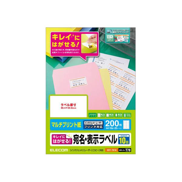 【お取り寄せ】エレコム 宛名表示ラベル 再剥離可能 10面 20シート EDT-TK10