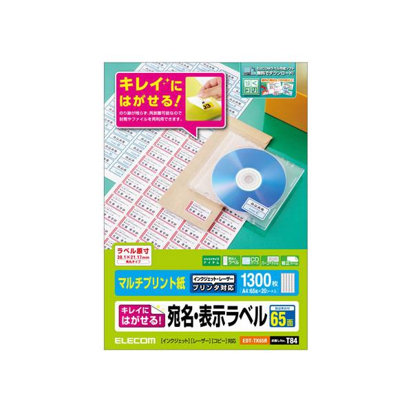【お取り寄せ】エレコム 宛名表示ラベル 再剥離可能 65面 20シート EDT-TK65R