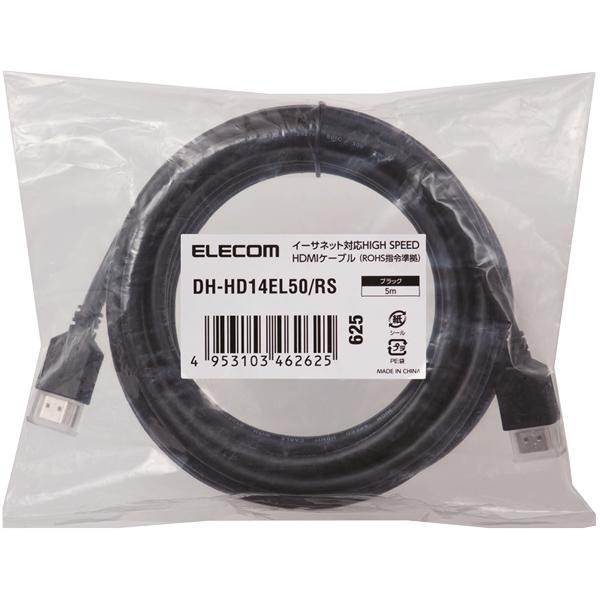 エレコム RoHS指令準拠HDMIケーブル/イーサネット対応/5.0m/ブラック/簡易パッケージ DH-HD14EL50/RS
