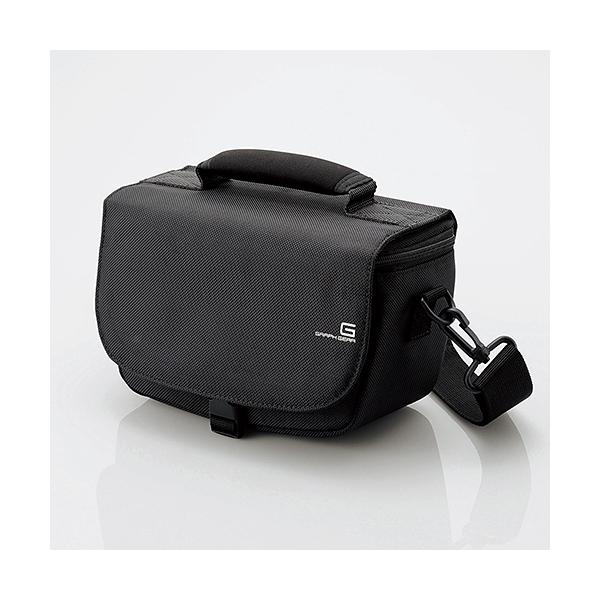 - ■ショルダーでも手提げでも持てる2Wayタイプ。望遠レンズも一緒に収納できるミラーレス一眼カメラ用バッグ“GRAPH GEAR”。■カメラとレンズ1本を収納できる、ミラーレス一眼カメラバッグ“GRAPH GEAR”です。 ■ケース内側には、カメラ本体を傷つけにくいクッション性のある素材を使用しています。 ■収納部のレイアウトを変更できる着脱式の仕切板が付いています。 ■フタの裏側にはレンズキャップなどの収納に便利なメッシュポケットが付いています。 ■ケース前面と背面、フタ内側にそれぞれ、小物を収納できるポケットを装備しています。 ■肩の負担を軽減するパッド付ショルダーベルトが付いています。 ■ショルダーベルトは取り外しでき、長さ調節も可能です。 ■手提げに便利なクッション付ハンドルを装備しています。 ■地面に直接置いても汚れにくいフットパーツが付いています。■外寸:幅220mm×奥行120mm×高さ165mm■参考収容寸法:幅210mm×奥行100mm×高さ120mm■ポケット数:メッシュポケット×1、フリーポケット×2■ポケット寸法:メッシュポケット内寸幅180mm×高さ80mm、 前面ポケット内寸:幅200mm×高さ90mm、 背面ポケット内寸:幅200mmx高さ100mm■カラー:ブラック■材質:表面素材:ポリエステル 内生地:ポリエステル■重量:約320g■付属品:ショルダーベルトエレコムダイレクトショップJANコード:4953103471177ショルダーでも手提げでも持てる2Wayタイプ。望遠レンズも一緒に収納できるミラーレス一眼カメラ用バッグ“GRAPH GEAR”。 カメラと望遠レンズも一緒に収納できるミラーレス一眼カメラ用バッグショルダーでも手提げでも持てる2Wayタイプ。カメラと望遠レンズも一緒に収納できるミラーレス一眼カメラ用バッグ“GRAPH GEAR”です。 クッション性のある素材を使用ケース内側には、カメラ本体を傷つけにくいクッション性のある素材を使用しています。着脱式仕切版付き収納部のレイアウトを変更できる着脱式の仕切板が付いています。 ハンドル付き手提げに便利なクッション付ハンドルを装備しています。 メッシュポケット付きフタの裏側にはレンズキャップなどの収納に便利なメッシュポケットが付いています。 収納ポケット×3ケース前面と背面、フタ内側にそれぞれ、小物を収納できるポケットを装備しています。 ショルダーベルト付き肩の負担を軽減するパッド付ショルダーベルトが付いています。ショルダーベルトは取り外しでき、長さ調節も可能です。 フットパーツ付き地面に直接置いても汚れにくいフットパーツが付いています。