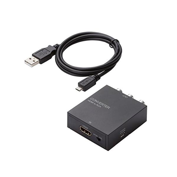 - エレコム AD-HDCV02 ダウンスキャンコンバーター (映像変換コンバーター/HDMI‐RCA/HDMI1.4)●HDMI信号をアナログの映像と音声信号に変換するコンバーターです。●HDMIのデジタル映像信号を、アナログ信号(RCA)に変換します。●HDMI信号に含まれるデジタル音声信号をアナログ信号(RCA)に変換します。●※RCAからHDMIへの変換はできません。●映像出力方法がHDMIのみのパソコンやタブレットに、コンポジット(RCA)入力のテレビやプロジェクタを接続し映像出力することができます。●1920×1080までの解像度入力に対応しています。●MicroB端子から給電可能な外部電源供給方式のため、安定した映像変換が可能です。●パソコン給電、AC給電が可能な給電用のMicroBケーブルが付いています。●※外部電源供給の際は、5V1A以上の定格出力が可能なACアダプタをご利用下さい。●ソフトやドライバは不要です。接続するだけで使用が可能です。【製品仕様】●対応映像出力機器 HDMI出力端子を搭載したパソコン・タブレット等 ●対応映像表示機器コンポジット映像入力端子を搭載したテレビ・プロジェクター等 ●コネクタ形状入力側:HDMIタイプA(19ピン)メス/出力側:コンポジット映像端子メス、アナログ音声端子(RCA)/電源端子:USB[microB]メス ●対応解像度最大入力解像度1920×1080 ●添付品 USBケーブル(給電用)×1本 ●保証期間 6カ月 環境配慮事項 EU RoHS指令準拠