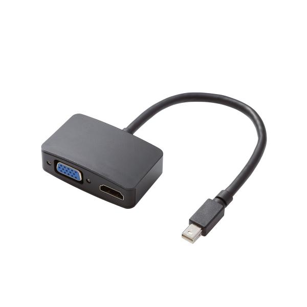 - 【特長】●出先でのプレゼンなどに最適。SurfaceシリーズなどのMini DisplayPort搭載機器のデジタル映像を、HDMI(Type-A19ピン)コネクタとVGA(D-sub15ピン)コネクタを持つディスプレイやプロジェクターなどに出力できる変換アダプタです。●1920×1080ドット解像度(FHD)に対応します。●HDMI/Mini DisplayPortデジタル音声出力に対応しています。(※音声出力は一部の音声出力に対応した機器のみの対応です。)●デジタルコンテンツの不正コピーを防止する著作権保護技術であるHDCPに対応しています。(※DPCPには対応していません。)●サビなどに強く信号劣化を抑える金メッキピンを採用しています。●外部ノイズの干渉を抑える3重シールドケーブル採用しています。【仕様】●メーカー:ELECOM●型番:TBMDPHDVGABK●商品名:HDMI-VGA変換アダプタ●コネクタ形状:miniDisplayPort(オス) - HDMI タイプA(19ピンメス)/VGA D-Sub(15ピンメス)●ケーブルタイプ:ノーマル●対応機種:MiniDisplayPortを搭載したSurface、タブレットPC、PC及びHDMI(タイプA-19ピンオス)/VGA(D-Sub15ピンオス)を搭載したケーブル・アダプタ等●対応解像度(dpi):1920×1080対応●シールド方法:3重シールド●ケーブル長(m):0.15 (※コネクタ含まず)●プラグメッキ仕様:金メッキ●カラー:ブラック【ご注意】※HDMIとVGAからMini DisplayPortへの変換はできません。※HDMIとVGAの同時出力はできません。※両ジャックに同時に接続した場合、VGA出力が優先されます。