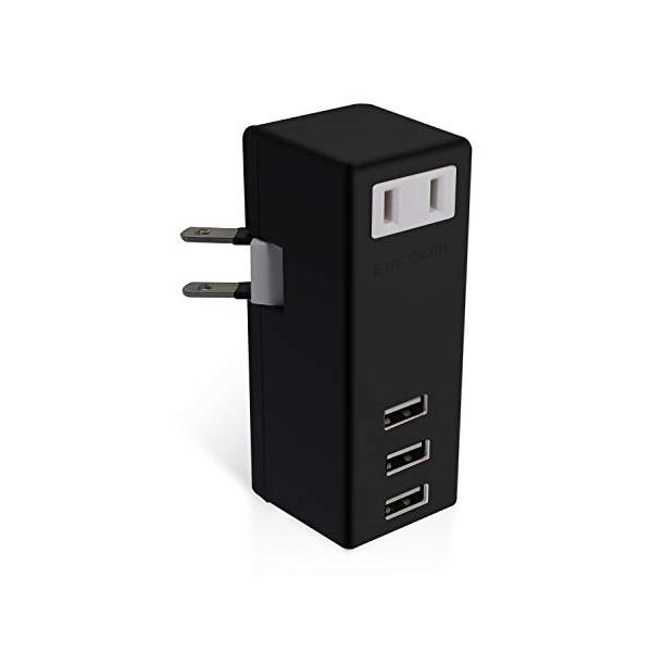 エレコム USBタップ/USBメス×3/AC×1/横挿し/2.1A/ブラック