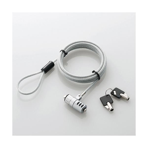 - 【特長】●ノートパソコン・液晶モニタのセキュリティスロットにセットすることによりノートパソコン・液晶モニタを盗難から守ます。ワイヤーをデスクに取り付け、PCに付いているスロットと接続するだけの簡単仕様です。●番号の異なる鍵をマスターキーで一括管理。各パソコン使用者がキーを保管。管理する場合、異なる鍵が複数必要になります。マスターキー管理者は、1本の鍵でこれら異なる全ての鍵を開閉することができます。※マスターキーは付属しておりません。【仕様】●メーカー:ELECOM●型番:ESL-7IM●商品名:セキュリティワイヤーロック●マスターキータイプ●製品種類:シリンダー錠一体型セキュリティワイヤー●対応スロットサイズ(mm):3×7スロット(縦横式)●ヘッド部寸法(mm):幅39×奥行27×高さ17●シリンダー径(mm):17●ワイヤー:・長さ(m):1.8・太さ(mm):4.5・カラー:シルバー●材質:・ヘッド部:亜鉛合金・ワイヤー:スチール+ソフトPVCコーティング●セット内容:シリンダー錠付きワイヤー(パッド付)、カギ×2本【ご注意】※マスターキーは別売りです。・マスターキー注文時の型番:ESL-7IMKEY※スロットサイズが対応していても、機種によってスロット内部の奥行きが対応しない場合がございます。
