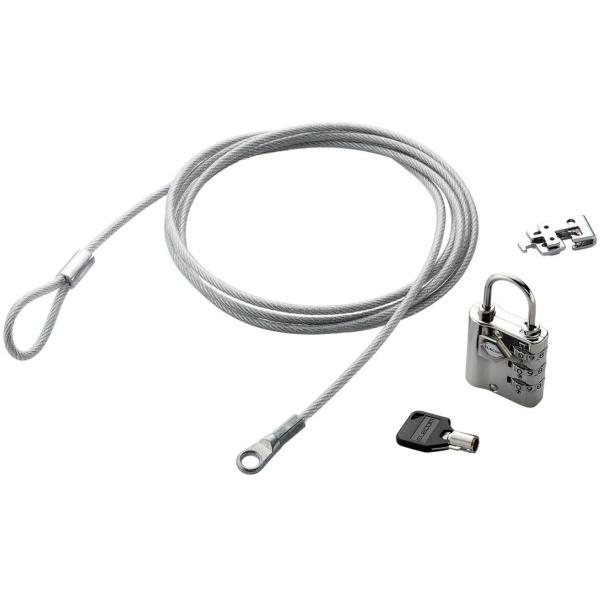 - 発売日:受発注製品ノートパソコンのセキュリティスロットにマスターキー対応ダイヤル錠をセットするだけで、ノートパソコンやマウス、テンキー等を同時に盗難から守ります。■ダイヤル錠(ESL-NK03)、ロックパーツ(ESL-RP)、ワイヤー(ESL-W2038)のセットアイテムです。 ■3桁の数字を合わせて開錠するダイヤル錠付。 ■マスターキーで開錠と暗証番号の設定変更ができます。 ■セキュリティスロットに簡単にセット出来るロックパーツ付■机の脚、ラックの柱等に巻きつけて使用するため、視覚による予防効果もあるワイヤー付 ■仕様:ダイヤル式南京錠 ■商品サイズ:ダイヤル式南京錠(3桁):幅34×奥行14.3×高さ58mm、ロックパーツ:幅17×奥行6.2×高さ33.5mm ■ワイヤー長さ:2.0m 商品情報 製品仕様[セット内容]マスターキー対応ダイヤル錠/ロックパーツ/ワイヤー [カラー]シルバー幅ダイヤル錠:34mm/ロックパーツ:17mm/ワイヤー:3.8mm高さダイヤル錠:58mm/ロックパーツ:33.5mm/ワイヤー:2000mm奥行きダイヤル錠:14.3mm/ロックパーツ:6.2mm重さ162g ESL10M