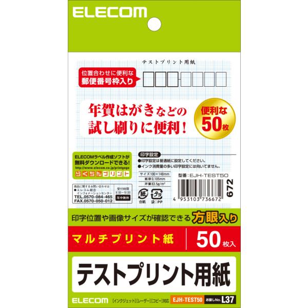 ELECOM エレコム 【本番前の試し刷りで失敗ゼロ!】はがきテストプリント用紙50枚 EJH-TEST50