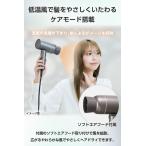 ■髪をやさしくいたわり、熱ダメージを抑えられる低温風のケアモードを搭載。風量約2.8m3/分(※)で低温風でも素早く乾かせます。また、スライドスイッチで簡単にケアモードに切り替えられます。 ※TURBO使用時 自社規格による ※JIS規格では1.5m3/分