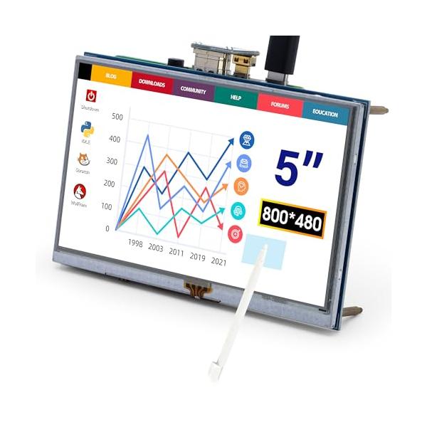 ・ラズパイにぴったり&LCD ディスプレイ5インチタッチモニターはラズパイの愛好者にぴったりです。5インチの小型モニター、背面の基盤部分にラズパイの基盤を気軽に固定できます。軽量で携帯しやすいです。解像度は800 * 480です。LCD ディスプレイなので、省エネとブルーライト軽減ができ、お気軽に使えます。