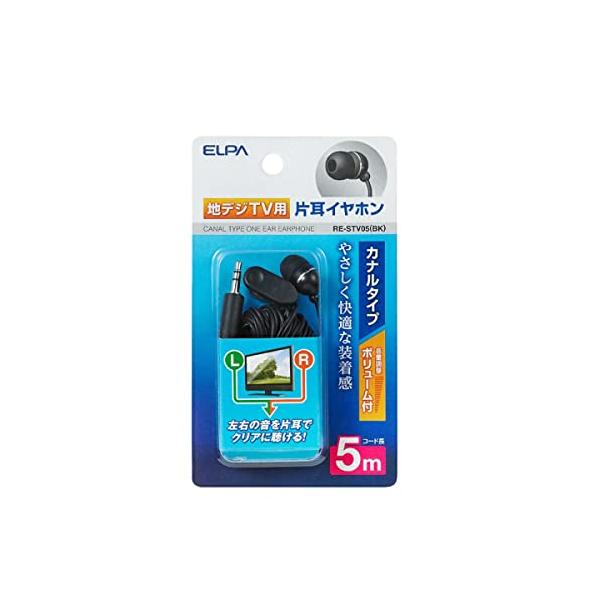 エルパ (ELPA) 地デジ用イヤホン 有線 片耳イヤホン 5m RE-STV05(BK)