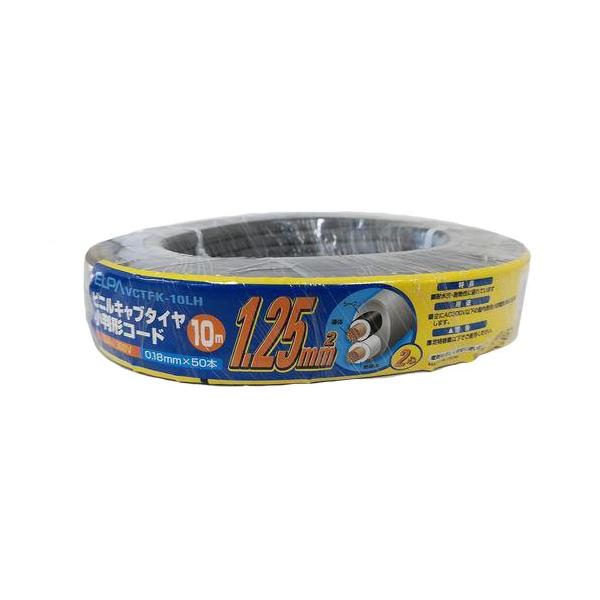 - 【商品説明】■VCTFK1.25?×2芯(0.18mm×50本)■定格:300V 12A■全長:10m■パッケージ:ラップ巻き【仕様】■耐水性・耐熱性に優れています。■持ち運び、または移動の少ないAC300V以下の屋内使用小型電気機器に使用します。