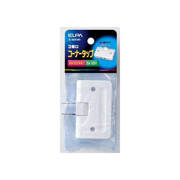【お取り寄せ】朝日電器 コーナータップ ホワイト 3個口 A-36H(W)
