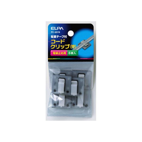【お取り寄せ】朝日電器 コードクリップ 中 6個入 PE-697H コード止め ステップル 配線パーツ 電源タップ 家電