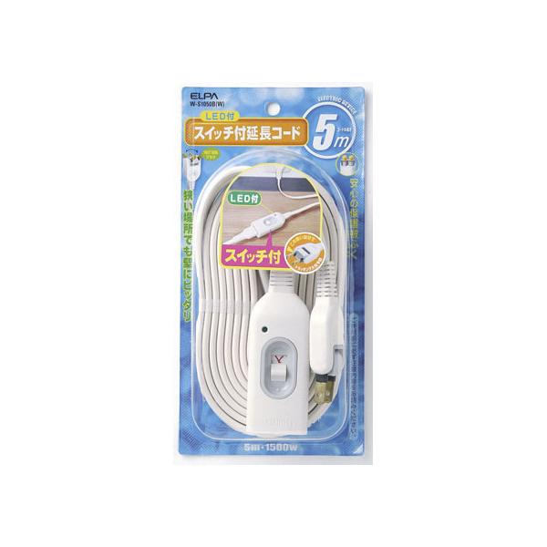 【お取り寄せ】朝日電器 スイッチ付延長コード 5m W-S1050B(W) 延長コード 電源タップ OAタップ 配線パーツ 家電