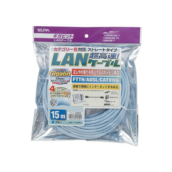 【お取り寄せ】朝日電器 CAT6LAN 15m LAN-1150(BL) LANケーブルカテゴリー6 LANケーブル ケーブル 電源タップ 配線パーツ 家電