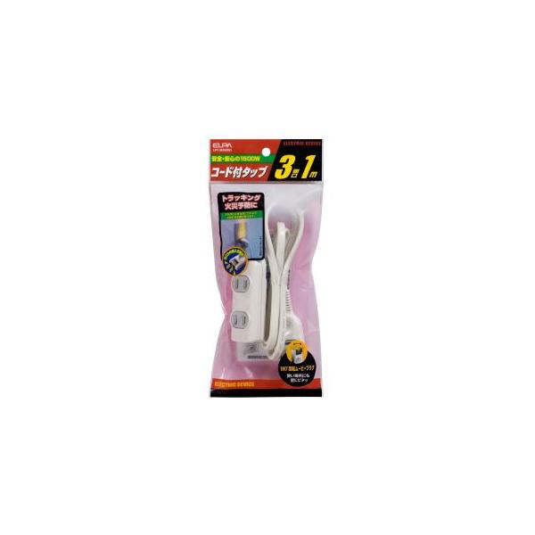 エルパ LPT-301N W EDLPコード付タップ 3個口 1m ELPA 朝日電器