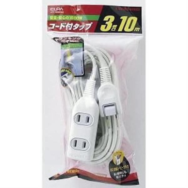 ELPA エルパ 朝日電器 LPT-310N(W) コード付タップ 3個口 10m ホワイト