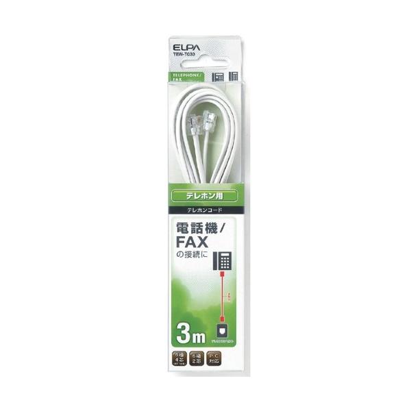 エルパ ELPA 朝日電器 テレホンコード6極2/4芯 3m TEW-T030