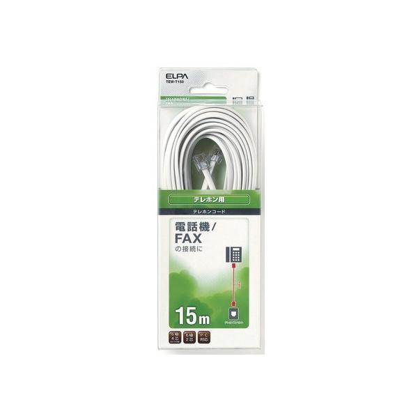 朝日電器 6極4芯・2芯兼用テレホンコード 15m TEW-T150