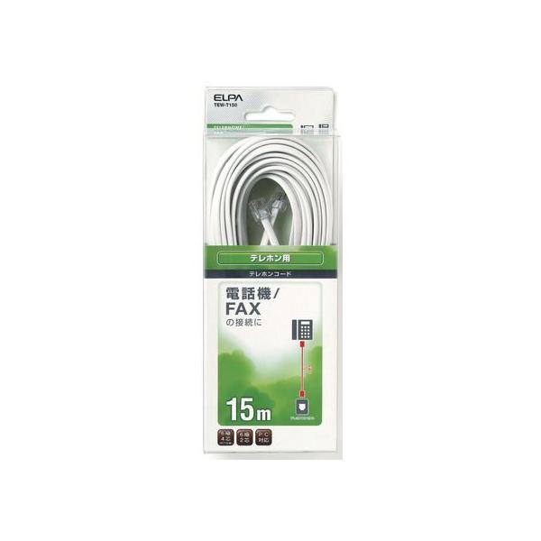 - [エルパ テレホンコード6極2/4芯(15m) TEW-T150 [TEWT150]] の商品説明●室内のテレホンコンセントと、モジュラータイプの電話機、FAX、モデム内蔵のパソコンなどを接続するときに使用。●6極4芯のNTT仕様のホームテレホン、ビジネスホンに使用可能。●6極2芯の一般電話機、留守番電話機、FAX等のコードとしても使用可能。[エルパ テレホンコード6極2/4芯(15m) TEW-T150 [TEWT150]]のスペック●コネクタ:モジュラープラグ⇔モジュラープラグ●6極4芯(NTT仕様)/6極2芯兼用●パソコン通信対応●コード長:15m○返品不可対象商品