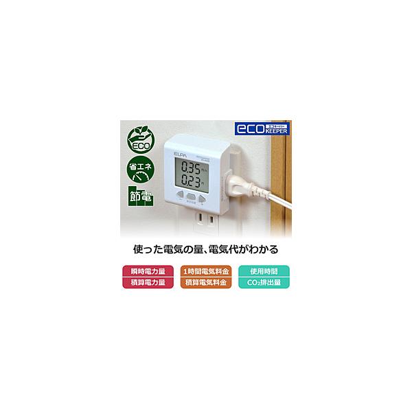 - ●接続した電気機器の使用時間、積算電気料金、1時間あたりの電気料金、瞬時電力量、積算電力量、CO2排出量を測定できます。●電気料金単価を99.99まで自由に設定できます。●表示切替ボタンを押すと表示項目が順番に切替わります。●見やすい大型LCD表示●電圧:AC100V●電気容量:1500Wまで※エアコン・オイルヒーターには使用できません。