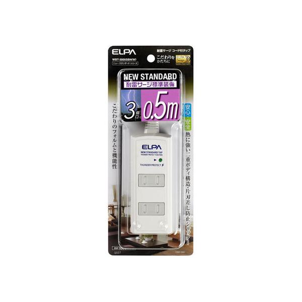 【お取り寄せ】朝日電器 耐雷コード付タップ 2P3個口0.5m WBT-3005SBN(W)