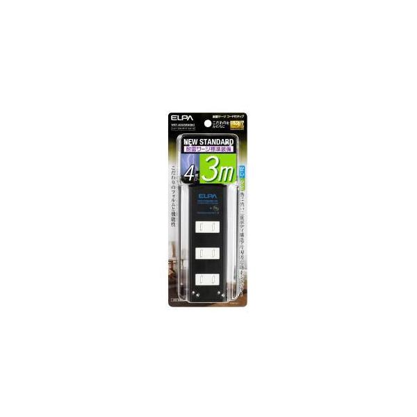 エルパ WBT-4030SBN BK 耐雷 コード付タップ 4P 3m 黒 ELPA 朝日電器